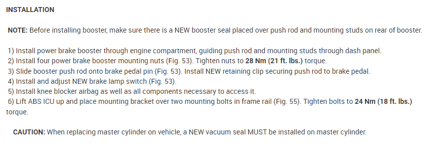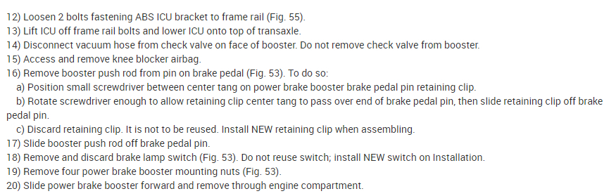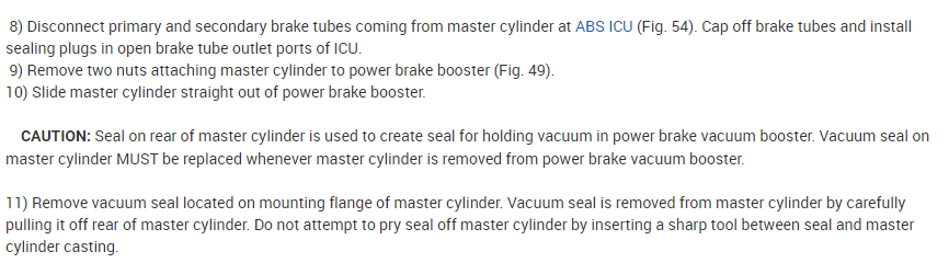 Here is the information you requested. Be sure to just move the brake master cylinder slightly out of the way so that you don't have to open a line and then have to bleed the brake system. I've attached picture steps below on how to change the power brake booster on your vehicle. Hope this helps and thanks for using 2CarPros.