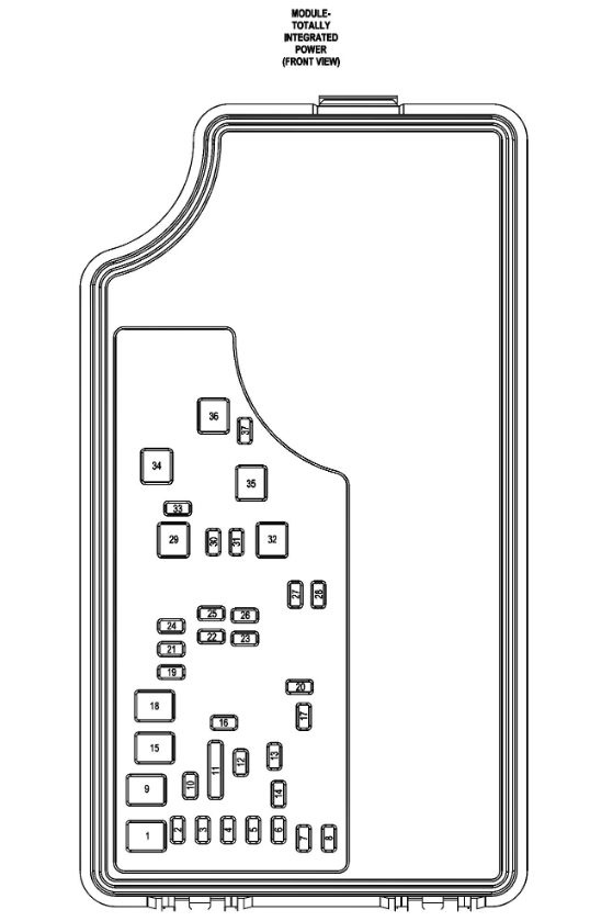 The Totally Integrated Power Module (TIPM) is serviced as a unit with the engine compartment wire harness. If any internal circuit of the TIPM or the TIPM housing is faulty or damaged, the entire TIPM and engine compartment wire harness unit must be replaced.