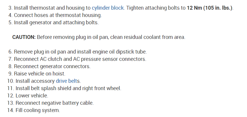 17. Start the engine and allow it to reach normal operating temperature, then check for leaks and proper thermostat operation.
