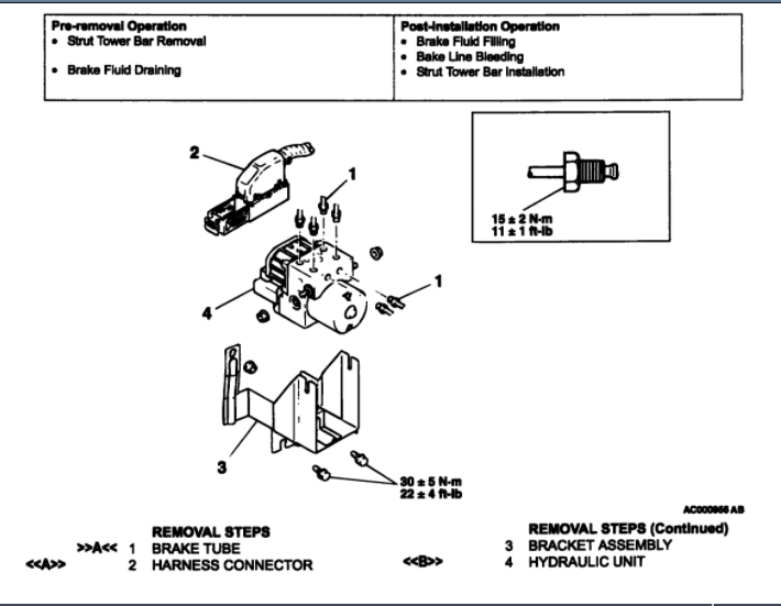 Here is the information you requested. I've attached picture steps below on how to change the ABS hydraulic unit on your car below. I've also attached brake bleeding steps and here is a tutorial to view as well: