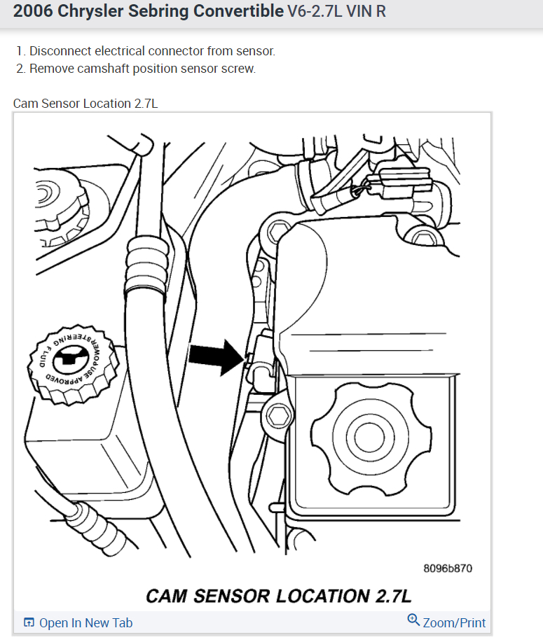 Where Camshaft Sensor Is Located On Engine Of 2.7 Sebring