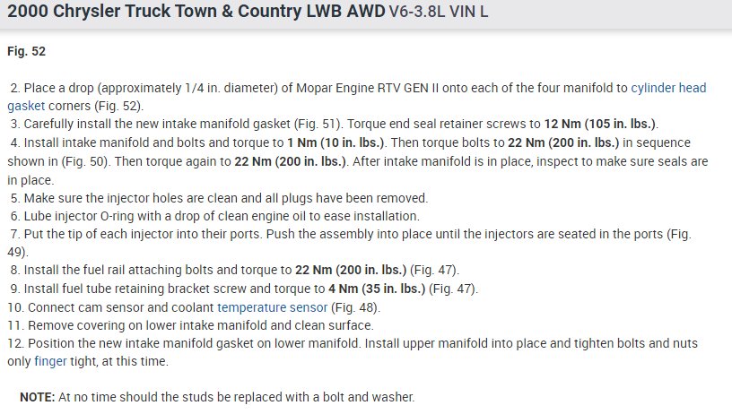 As you know it is crucial to have the correct torque and torque sequence for a successful intake gasket replacement.
