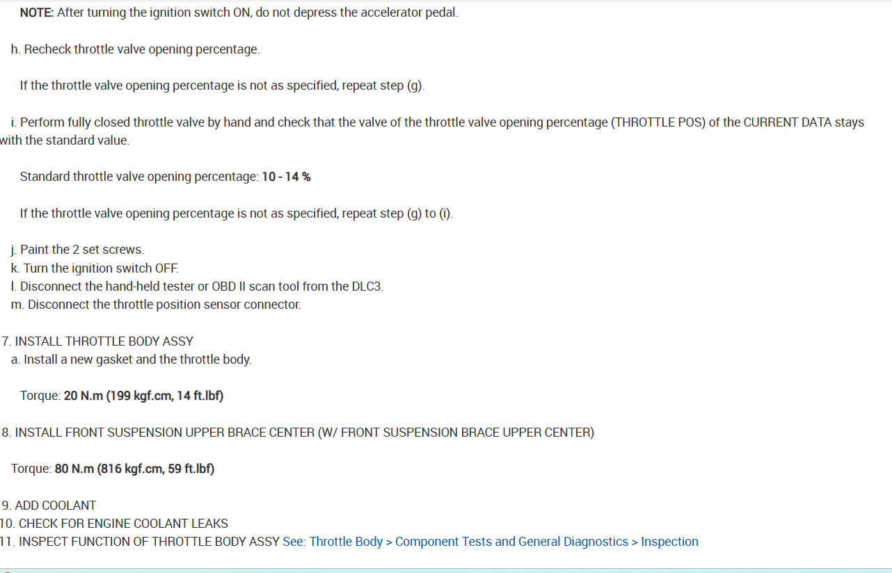 I'm just wondering if there is a special way of cleaning the TB? Does it have to be removed can I open the butterfly by hand? Does it require some type of relearn or calibration after cleaning? And say I didn't clean it the best would it cause the butterfly to stick? I have an unusually high RPM now only at a cold start and by that I mean no matter the temperature outside. So I'm thinking I didn't clean it good enough causing sticking or I screw up by cleaning it improperly. Please help and again only on cold start and no codes.