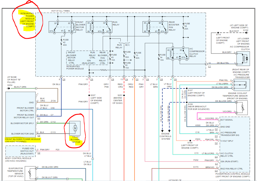 Things such as the integrated power module, the blower control module, as mentioned, the temperature controller, or even the body control module all play a role in the circuit. Any of them can cause problems, but some are more likely to cause what you experience.
