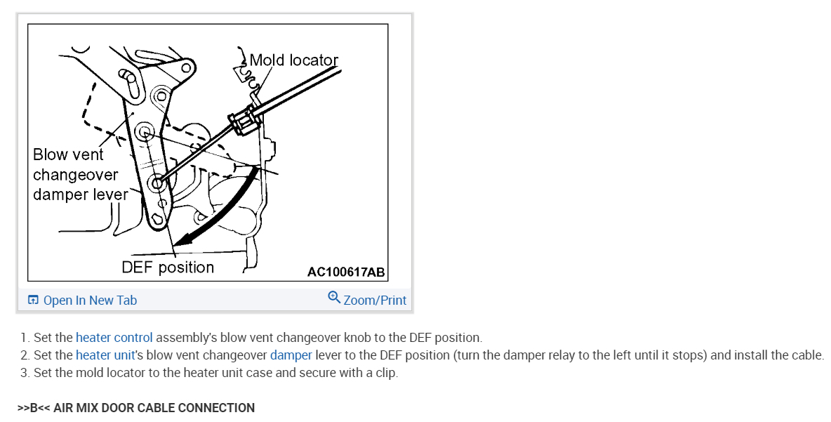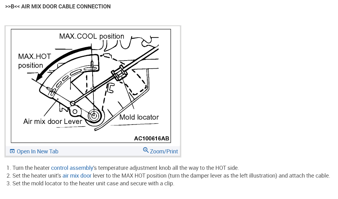 I've had issues getting heat or A/C to my car's cabin. I've checked the heater core and it seems to have good flow. I've replaced the thermostat and the blower motor still pushes air. What else can I try with my temperature control knob "stuck" (by stuck I mean it turn with pliers but eventually returns back to original position. Could this knob be my only issue? What else could it be?