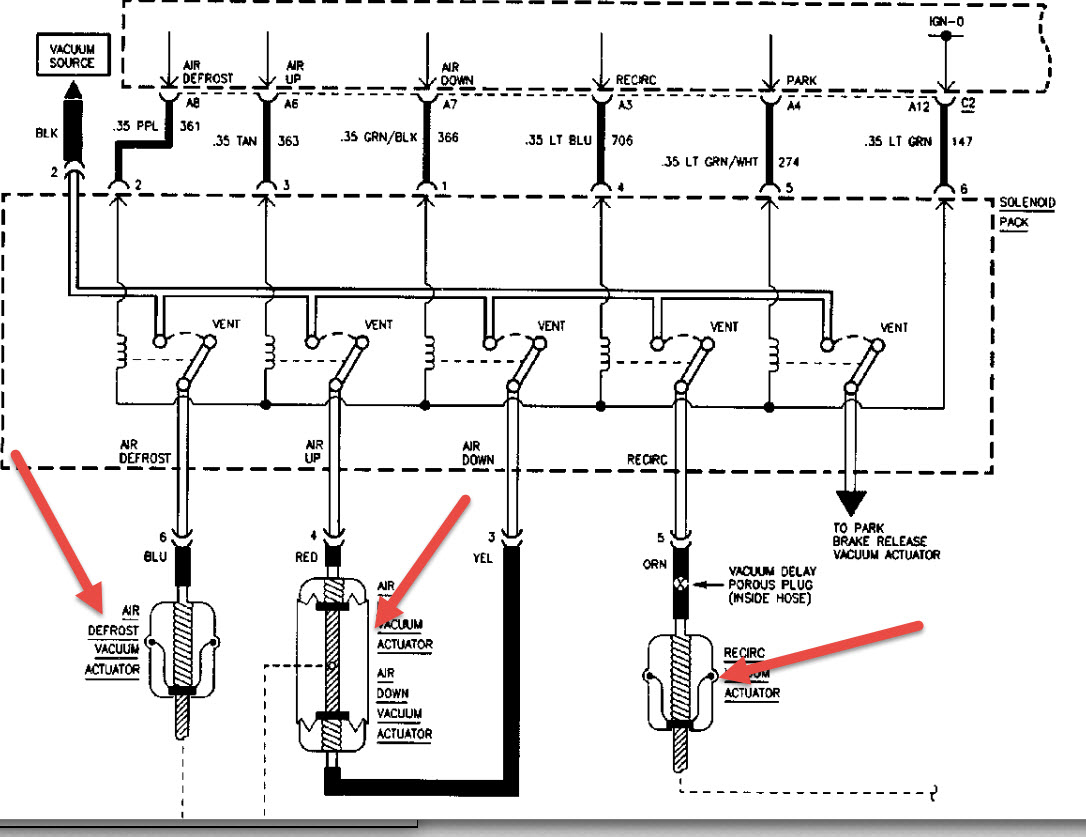I have no air pushing from my front vents, nothing from defroster or floor blowers either. The rear/center console blows air though.