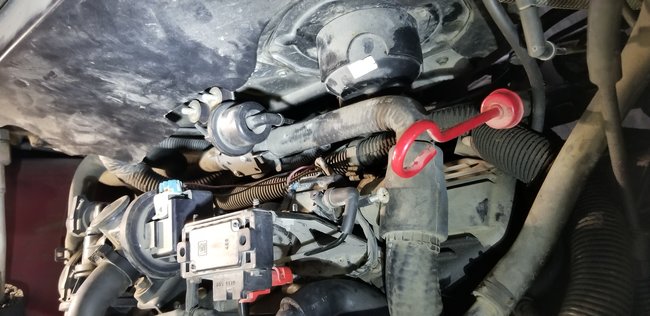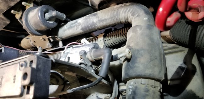 After checking under the hood, we noticed there is an 8" vacuum hose with a screw stuck in it because it is not attached to anything else and there appears to be something missing behind the MAP sensor up by the firewall as there are two threaded studs with rubber spacers and nothing attached or connected there. We have looked for pictures to clue us in on what should be attached but have had no luck yet.