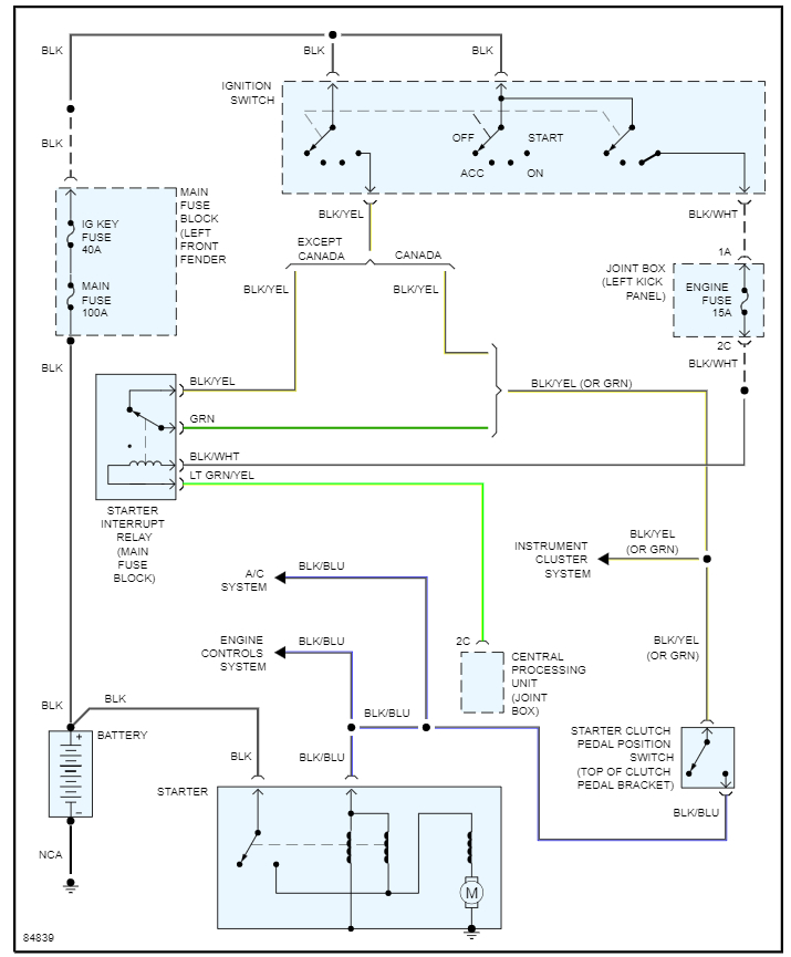I am attaching the wiring diagram as well which will help with this issue if the engine is not cranking over (no crank no start) as we need to check voltage at the starter to find out if this is where we need to start.