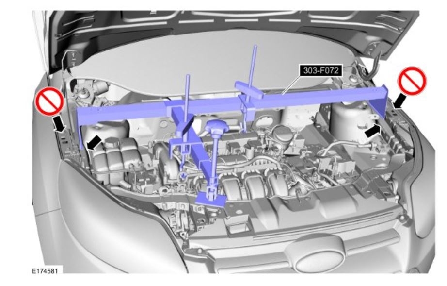 4. Use Special Service Tool: 303-F072 Support Bar, Engine.