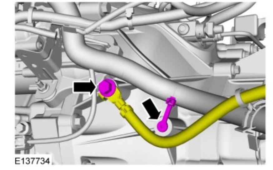 Refer to: Battery Tray See: Battery Tray > Removal and Replacement > Battery Tray (414-01 Battery, Mounting and Cables, Removal and Installation).