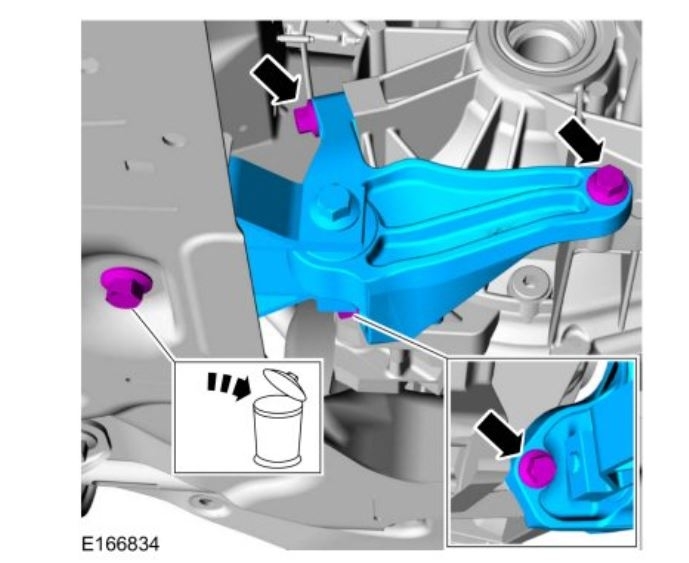 17. NOTICE: Do not use a prying device or separator fork between the ball joint and the wheel knuckle. Damage to the ball joint or ball joint seal may result. Only use the pry bar by inserting it into the lower arm body opening.