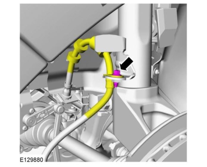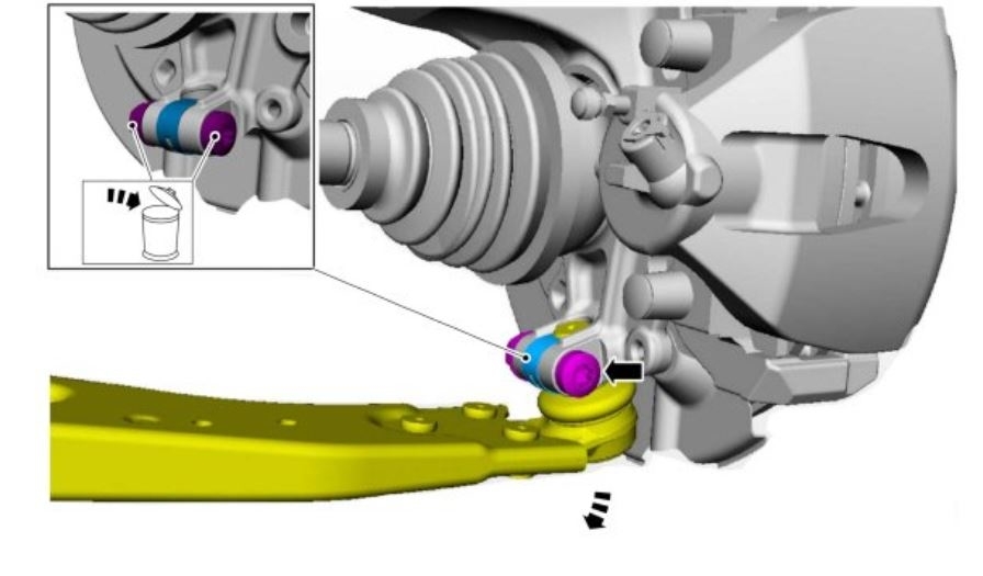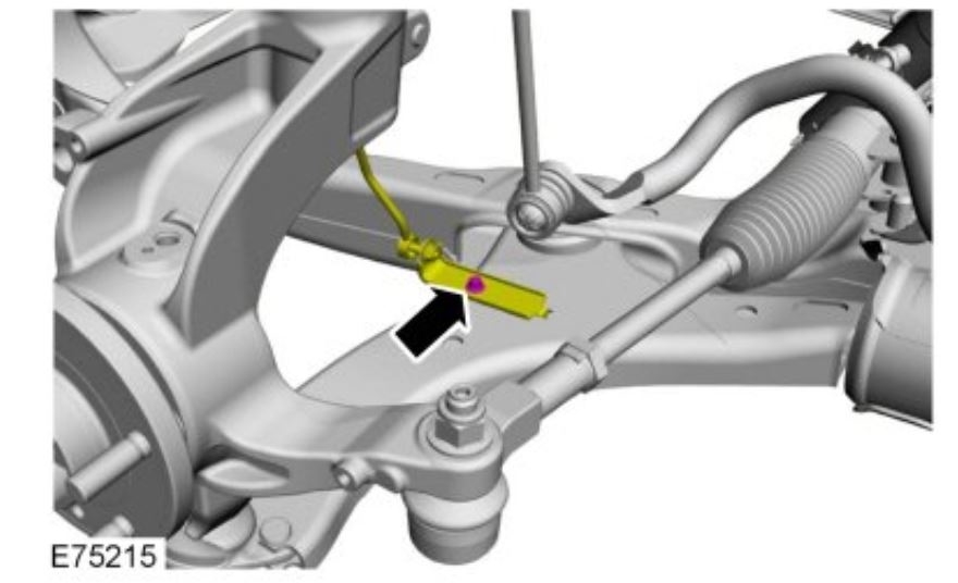 NOTICE: Use care when releasing the lower arm and wheel knuckle into the resting position or damage to the ball joint seal may occur.