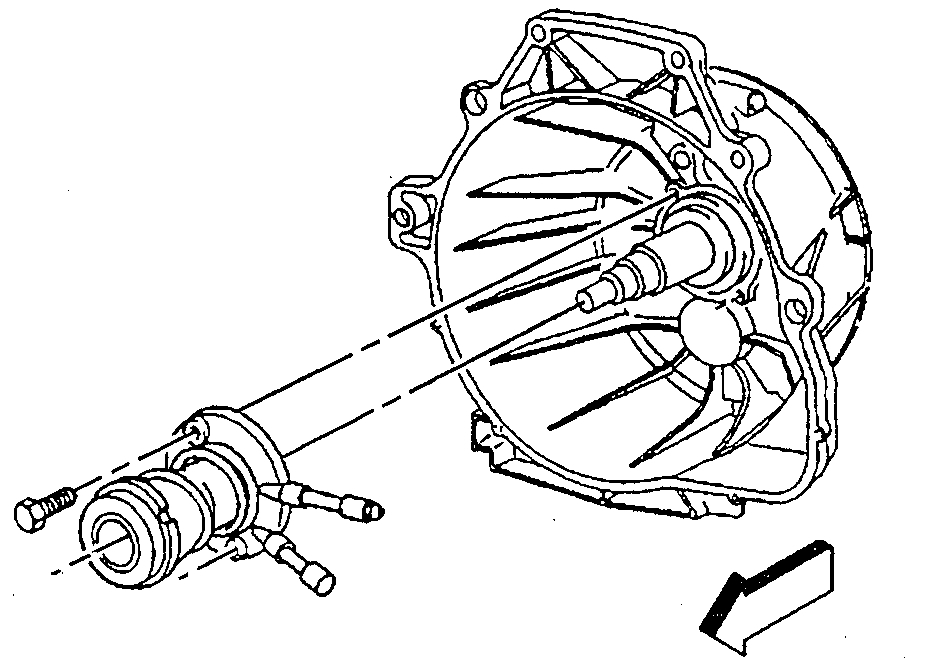 1. Install two bolts securing the concentric slave cylinder to the transmission and input shaft.