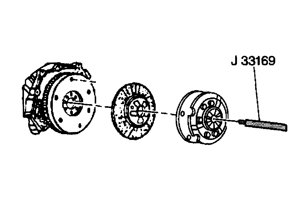 1. Using J 33169 for installation alignment, position the pressure plate and cover plate to the flywheel.