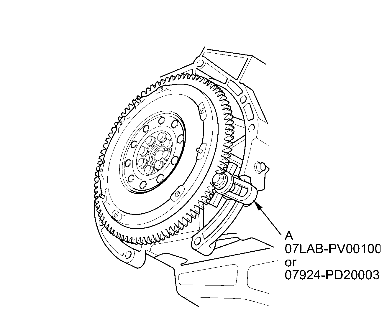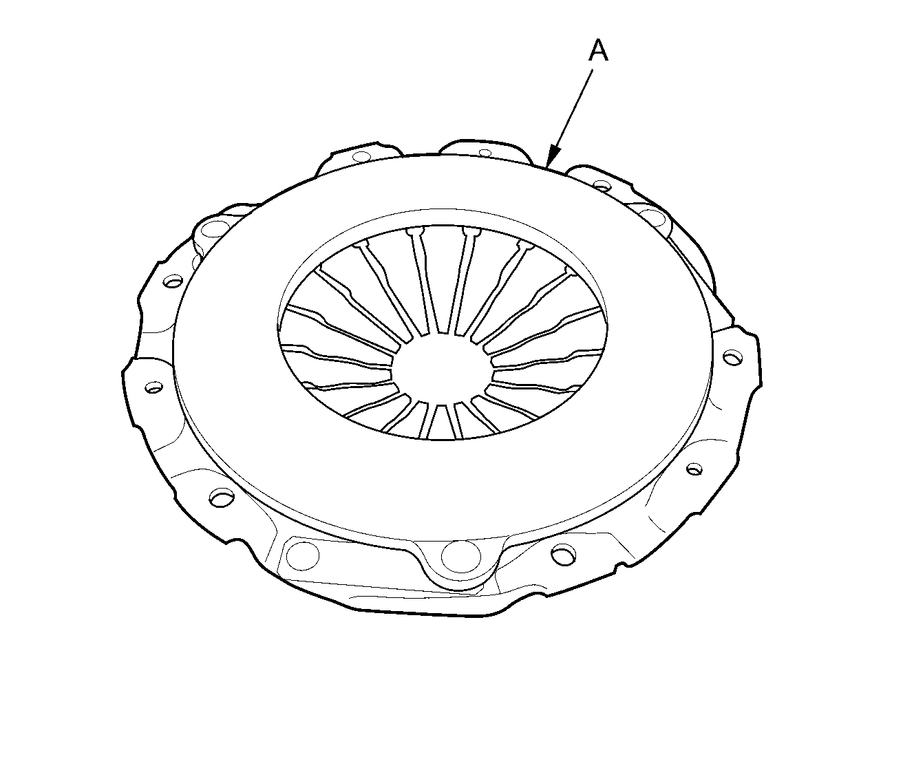 27. Torque the mounting bolts (A) in a crisscross pattern. Tighten the bolts in several steps to prevent warping the diaphragm spring. Make sure that there is not clearance between the pressure plate and the flywheel.