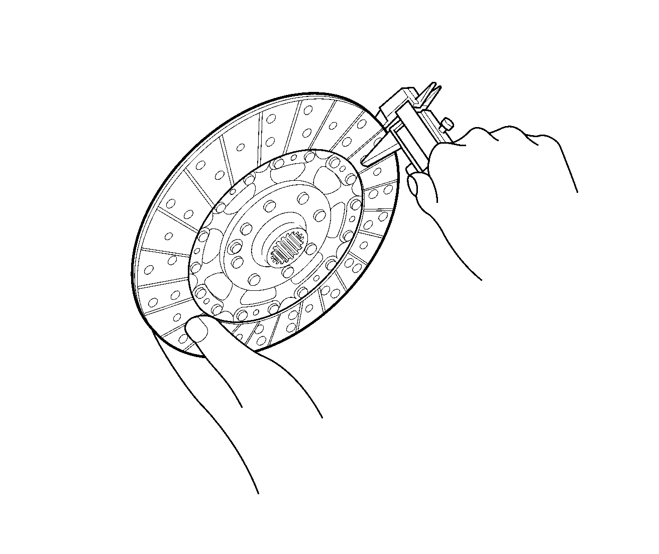 10. Measure the clutch disc thickness. If the measurement is less than the service limit, replace the clutch disc.