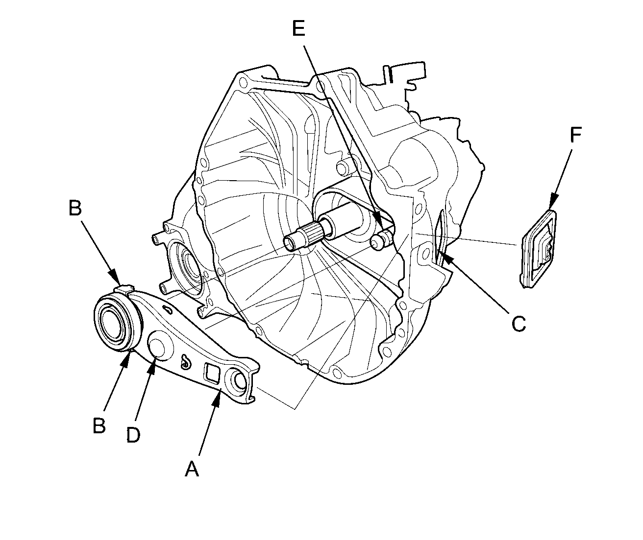8. Install the release fork boot (F). Make sure the boot seals around the release fork and the clutch housing.
