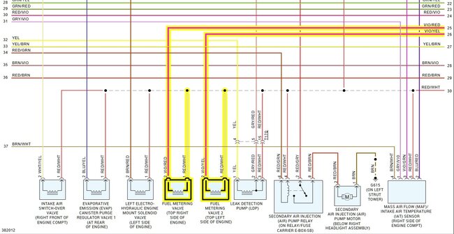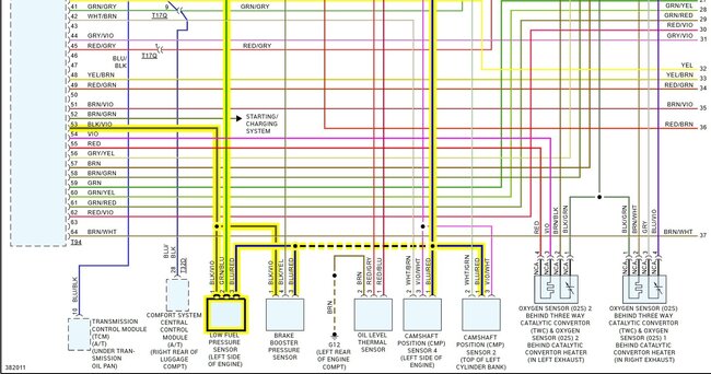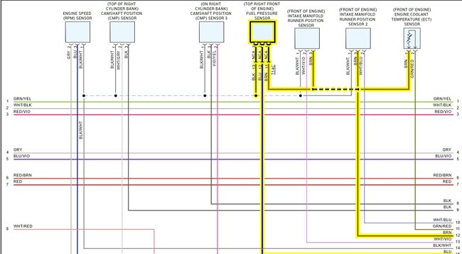 Get into both Fuel Rail Pressure sensor's signal wire(s) Or Data PIDs) and the Low (Fuel)Pressure Sensor, watch both of them when youre getting close to 20min and see if the signal spikes or drops out. They dont have the sensors labelled to good here, so I go by the sensors location Ill see on the fuel rail and then check by wire colors.