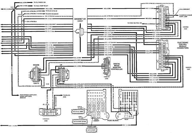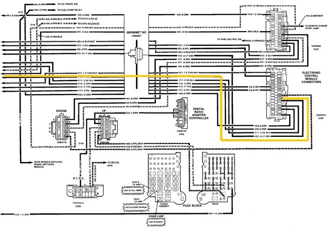 To verify you're taking readings in the right circuit, back-probe the yellow wire in the CTS connector. The meter's negative probe must be on the battery's negative post or on any clean, rust-free point on the engine. Ignition switch must be in the "run" position. If the problem is not occurring at this time, you're going to find something between 0.5 and 4.5 volts. Typical would be around 2.5 to 3.5 volts. The exact value is unimportant as long as it's not 0.0 or 5.0 volts.