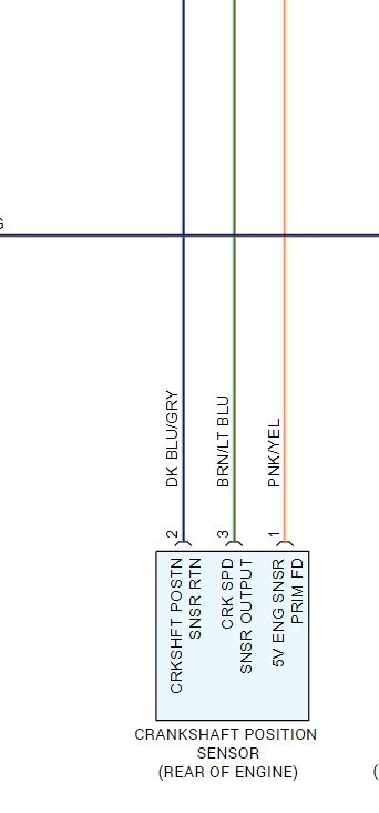 Both of those codes point to the circuit for the crank sensor, not so much at the sensor itself. Since the code changed after you replaced the sensor I would start at the sensor connector, is it clean inside? No corrosion on the pins? Next follow the harness from the sensor and look for a damaged or broken wire. A common thing is for a wire to rub on a sharp edge and cause coded by shorting, then you move the harness, and that code goes away, but the wire breaks and you get a different code. Now because those were the only codes set, I would look at the dark blue with gray and the brown with light blue wires as the 5-volt feed is shared by other sensors which didn't set any codes for its loss. My normal process is to visually inspect the harness, give the wires a good tug, they can corrode off and fail but still look okay, then move up the harness looking for damage or stretched areas.