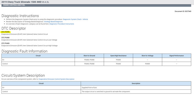 P0449 Evaporative Emission (EVAP) Vent Solenoid Valve Control Circuit