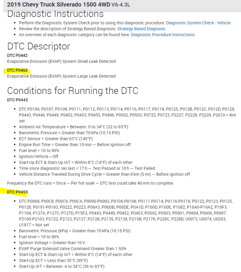 P0455 Evaporative Emission (EVAP) System Large Leak Detected