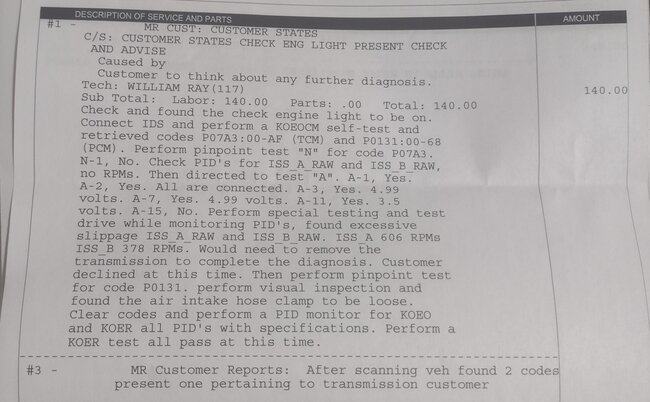 Code P07A3 means the internal "A" friction element inside the transmission is stuck "on".