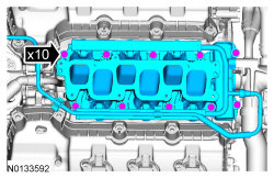 NOTICE: If the engine is repaired or replaced because of upper engine failure, typically including valve or piston damage, check the intake manifold for metal debris. If metal debris is found, install a new intake manifold. Failure to follow these instructions can result in engine damage.