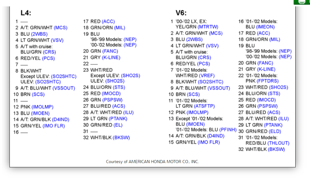 I have included the information that you requested in the diagrams down below. We also have a detailed vehicle manufacturer diagnostic troubleshooting guide for Direct Trouble Code (DTC) P1382 available if you would like. Please go through the diagrams down below and get back to us with what you find out or if you would like the troubleshooting guide.