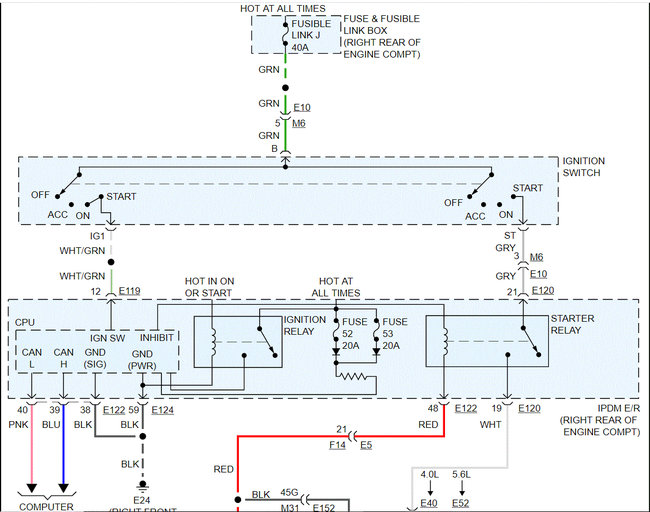 In the fusible link box (near the battery), locate fusible link J. See pic 3. I need to confirm power to and from it. If you look at the wiring schematic, not it powers the ignition switch. From there power goes through fuses and relays (tied into the CAN). Check those fuses as well.