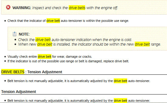 I'm attaching information on how to check and change the belt in this specific car in the images below.