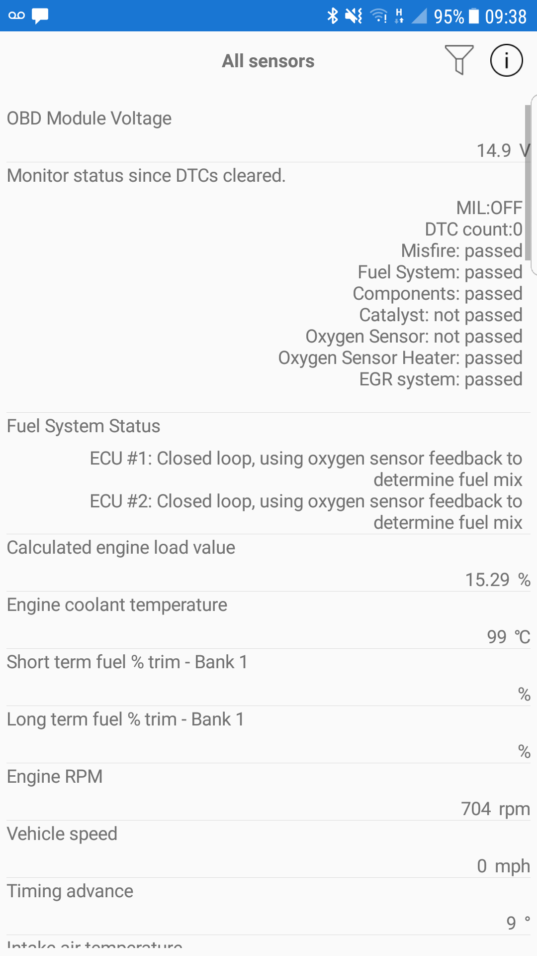 The idea that it is working in a closed loop is normal at start up. I noticed that the O2 sensors are incomplete. Basically, that means the codes have been cleared and the system has not completed a drive cycle (driven far enough) to reset that portion of the emissions readiness.