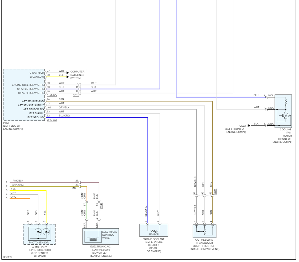 I also used a power tester to the wires and the fan plug in and it showed no power. But when unplugging the temperature sensor, the fan kicks on automatically after the key gets turned on. With all that happening the A/C is also not working.