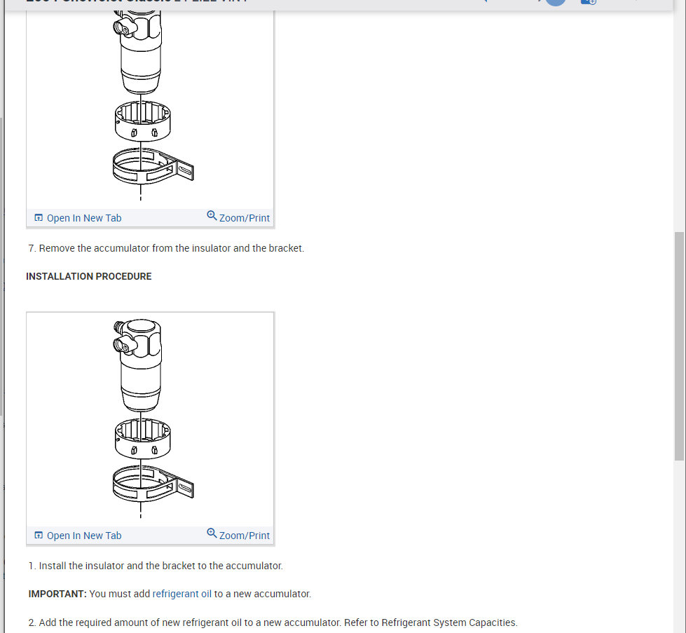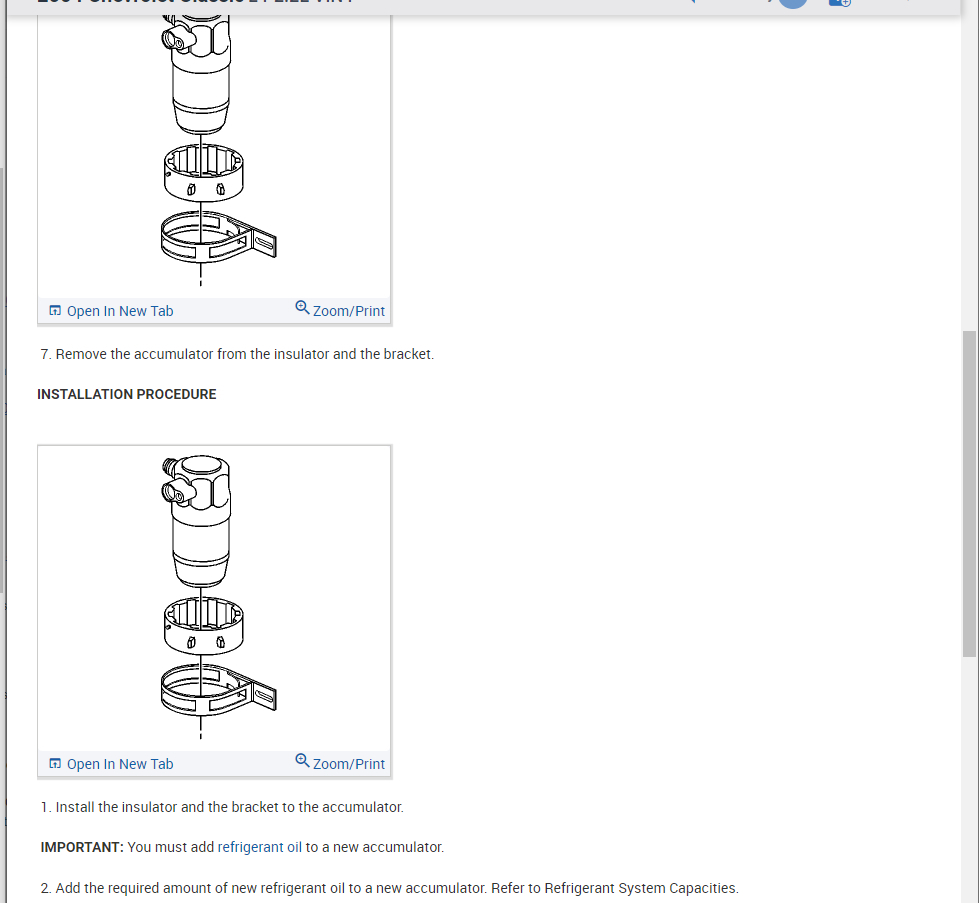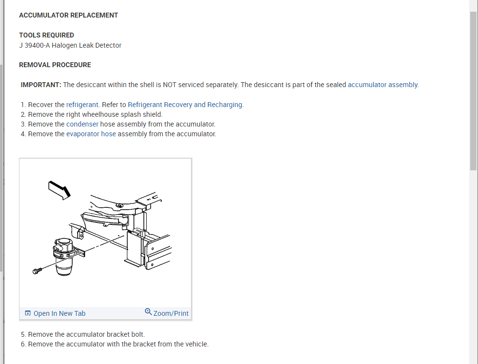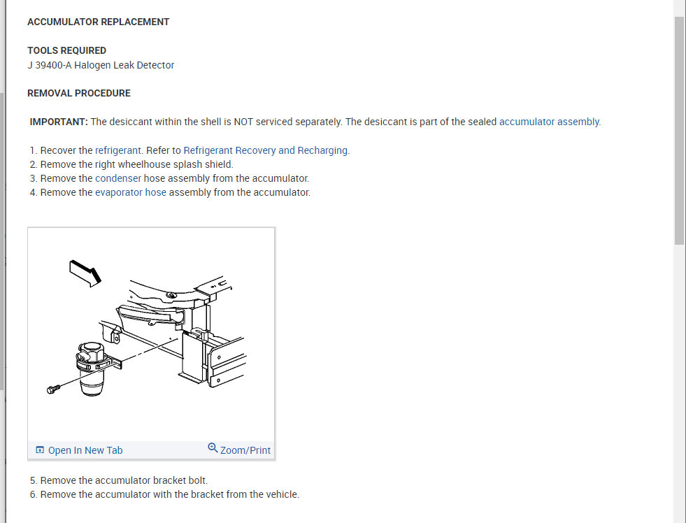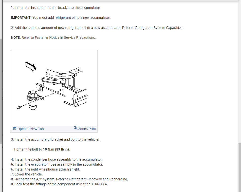 The process for the accumulator is attached as well. You will need to pull the system down into a vacuum and then recharge it so please refer to this guide for more help on this: