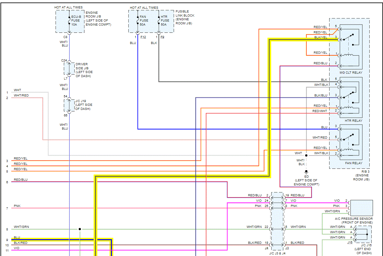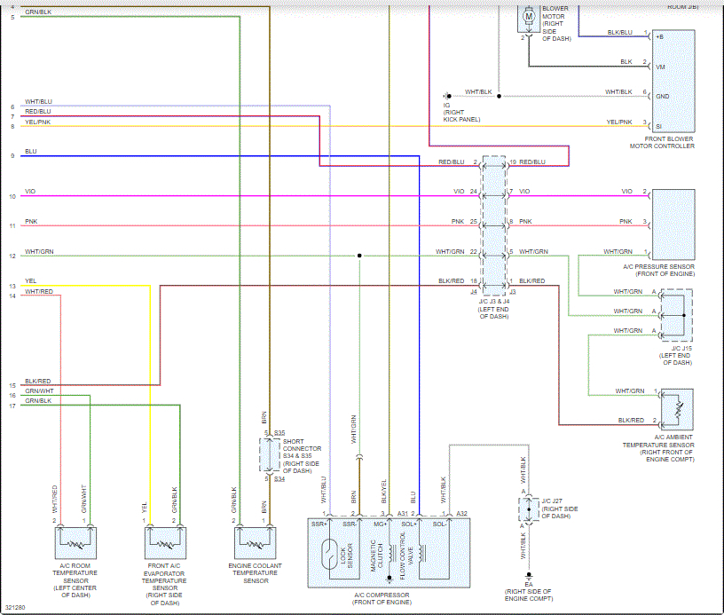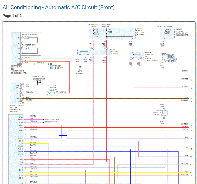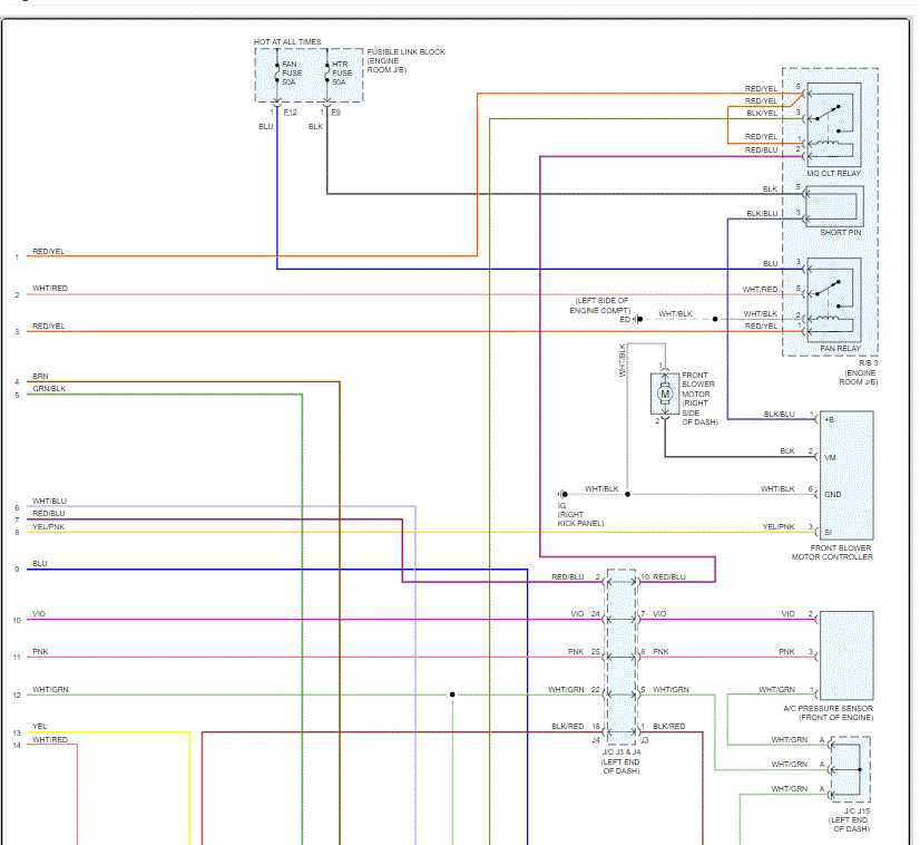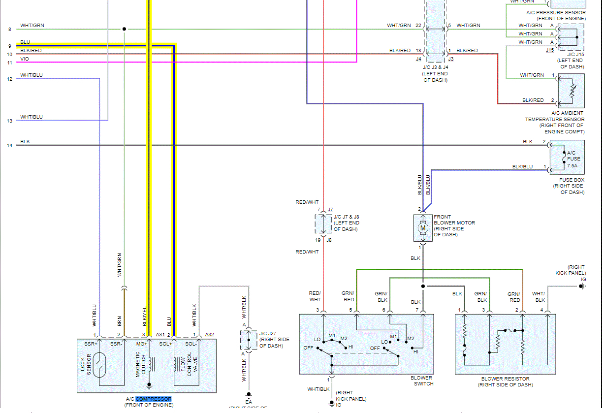 Good evening, the vehicle compressor is not functioning when the A/C switch is on. The blower fan is functioning, the system has enough pressure, when I connected power to the compressor directly from the battery, it function so the problem is not the compressor. Please Could you help me with the A/C circuit diagram?
