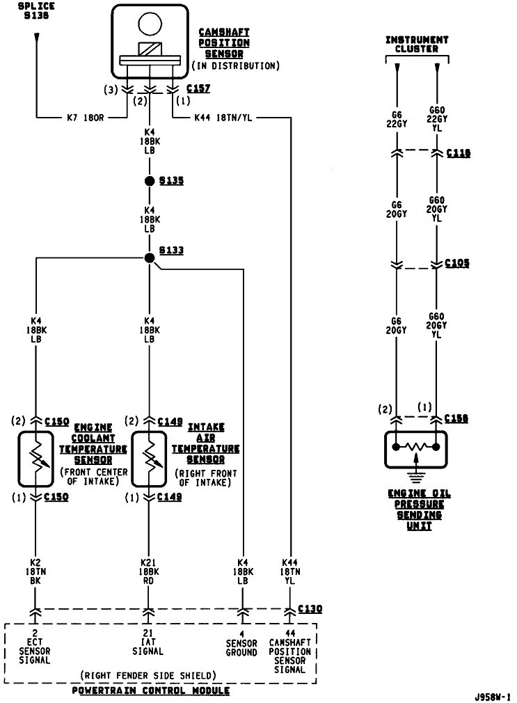 When there is no fault code, you'll need a scanner to see what the Engine Computer is seeing. I have a Chrysler DRB3 for my vehicles. That one lists each sensor with a "No" or "Present" to show when the signals are showing up. Aftermarket scanners have a similar means of showing that. You're looking for one that remains on "No" when you're cranking the engine. When you find one that stays on "No", most of the time it's due to a defective sensor, but first we always check the rest of the circuit. The diagrams for these two sensors are shown below. With the ignition switch in "run", check for 8 volts on the orange wire for the crankshaft position sensor, and at the distributor pickup connector. Check the ground wires too. That's the black / light blue at each sensor. Those aren't shown well in these diagrams. In fact, there's mistakes with some of the other sensors. Expect to find 0.2 volts on those ground wires. To be valid, all of these voltages must be taken with everything plugged in and connected, so that means back-probing through the weather seals on the connectors.