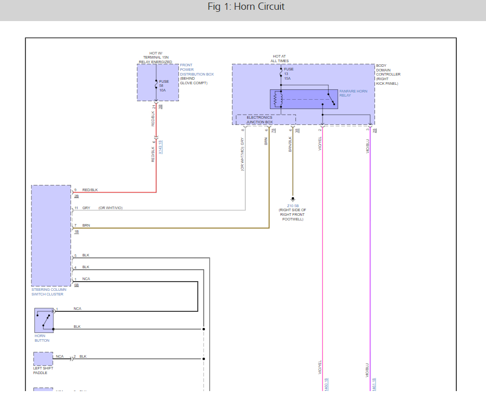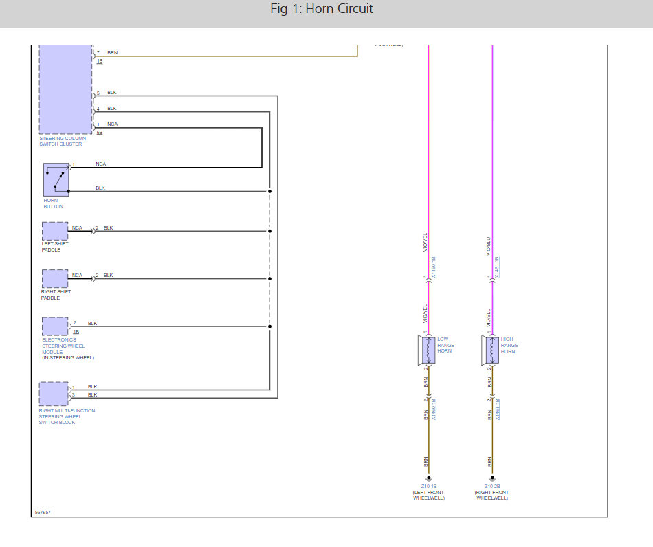 The diagram I attached was not mine but one I found on a forum that another user had posted from their car. I have checked the fuse diagram in my car, and it shows 9, 13, 38 and 42 as the fuses for the horn.