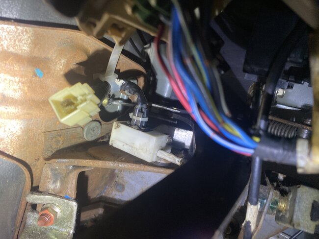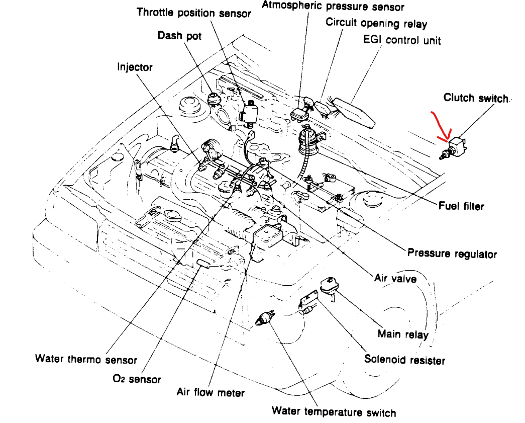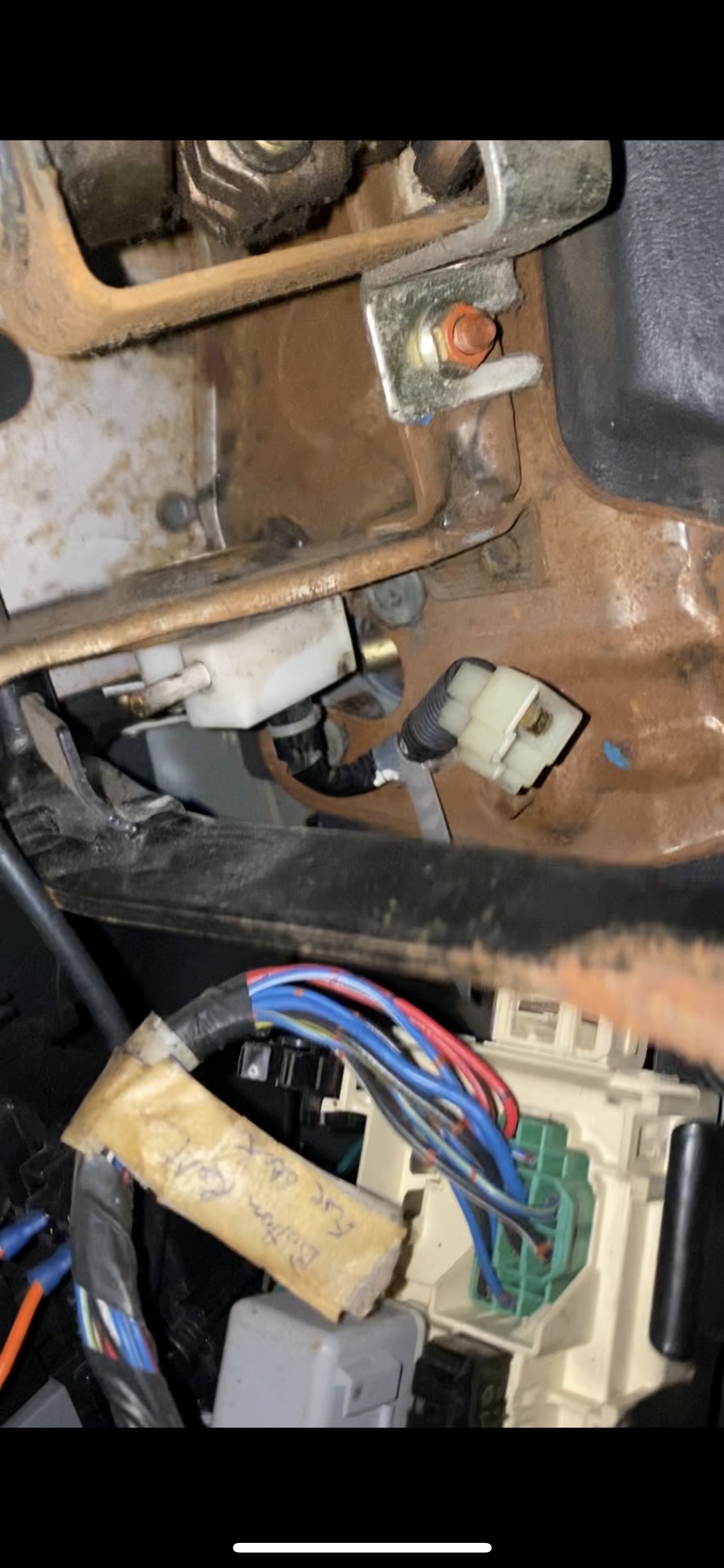 I have the vehicle listed above FWD, 3 door, 5sp. Battery is working and electrical systems come on when attempting to start the car. I looked underneath the dash to find the clutch safety/inhibitor switch. The connector coming from the switch is not connected to anything and is floating at the moment. I don't know where it's supposed to go or what other wires/connections/plugs I might be missing. Any info on diagrams or parts would be greatly appreciated.