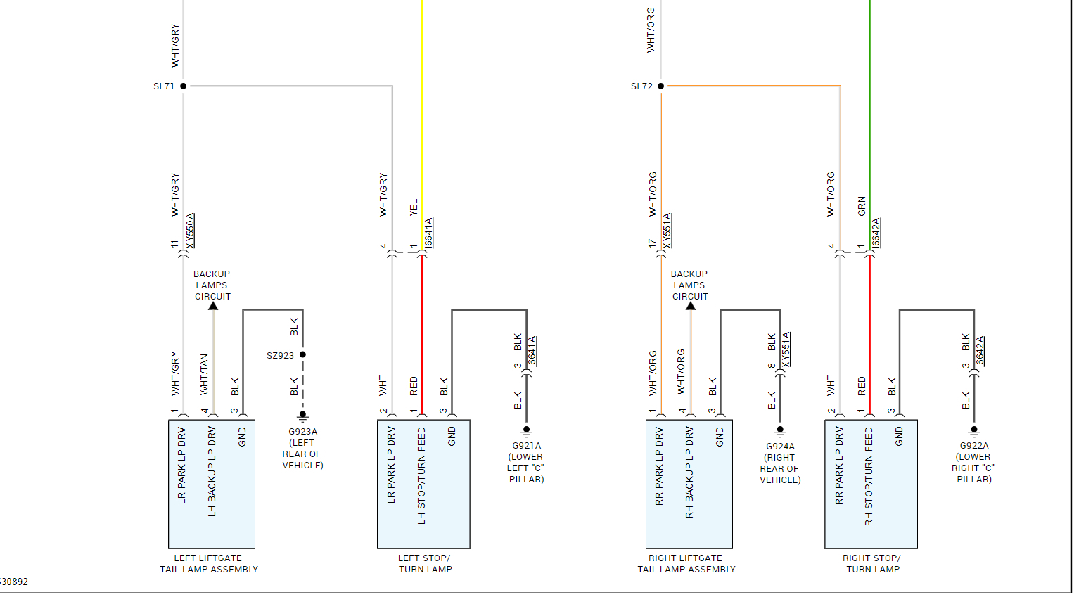 The problem started right after I hit the molding under the doors going from front to back wheel. I see some wiring there but nothing that match the colors I see on the light assy.