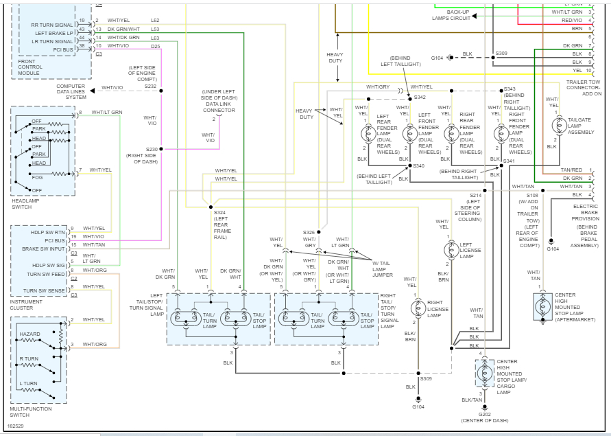 We are having electrical issues with our truck listed above 1500 5.7 liter Hemi with the running lights, signal lights, and braking lights all in the rear we have. Absolutely no power have tried everything under the sun. So, we just went and bought a new wiring harness from pull a part but are trying to figure out what color sites go to what and how they all need to be connected.