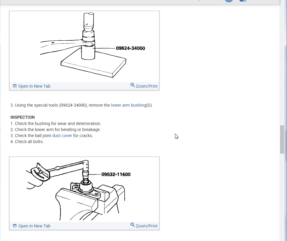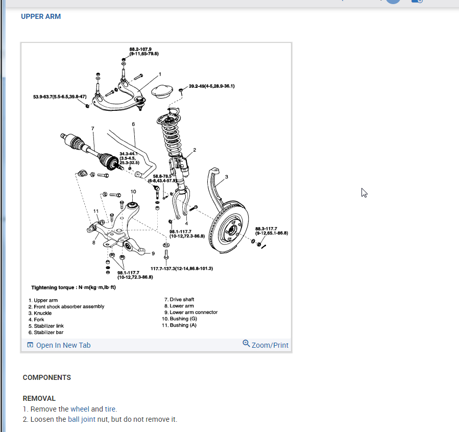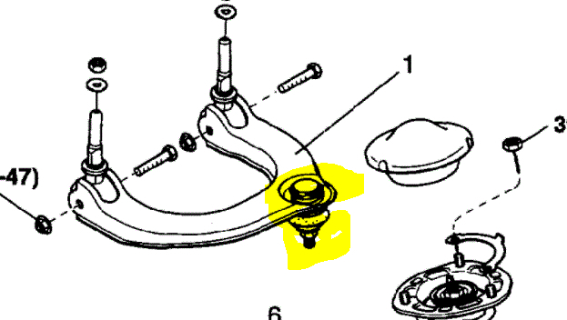 As far as the ball joints on this vehicle, you will need to contact a parts store and make sure they are available. Often times, they sell the entire control arm with the new ball joint included. Actually, at the end of the directions it indicates if the ball joint fails to replace the control arm. If that is the case, here are the directions for both the upper and lower control arms. I will start with the upper. The attached pics correlate with the directions.
