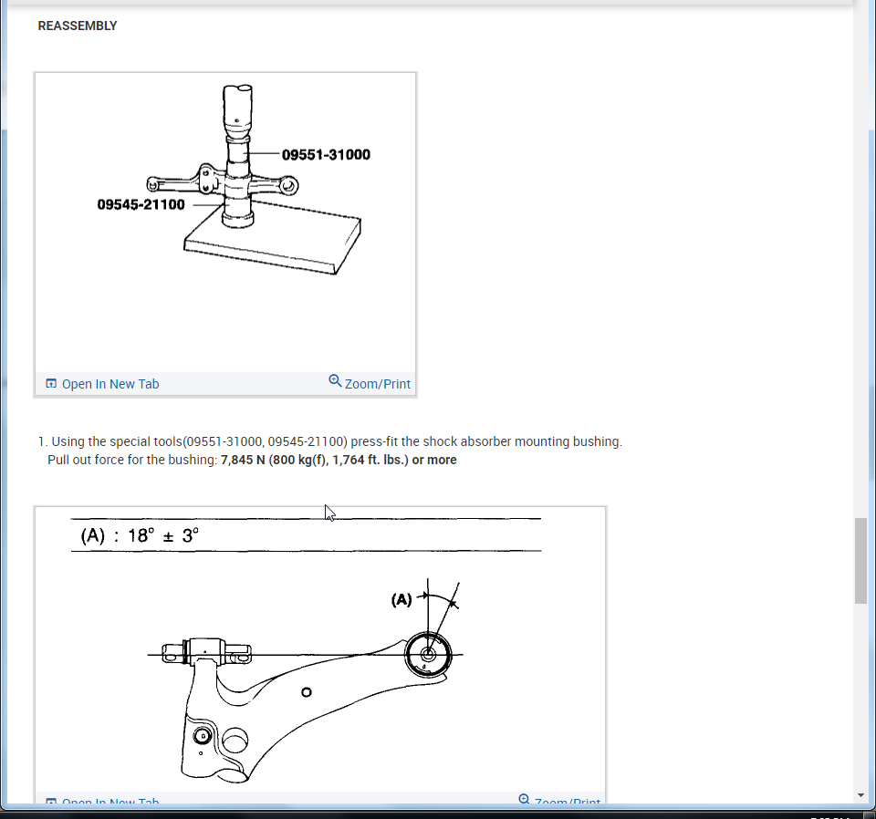 1. Using the special tools(09551-31000, 09545-21100) press-fit the shock absorber mounting bushing.