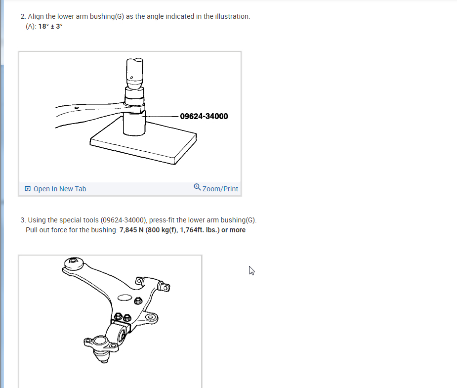 3. Using the special tools (09624-34000), press-fit the lower arm bushing(G).
