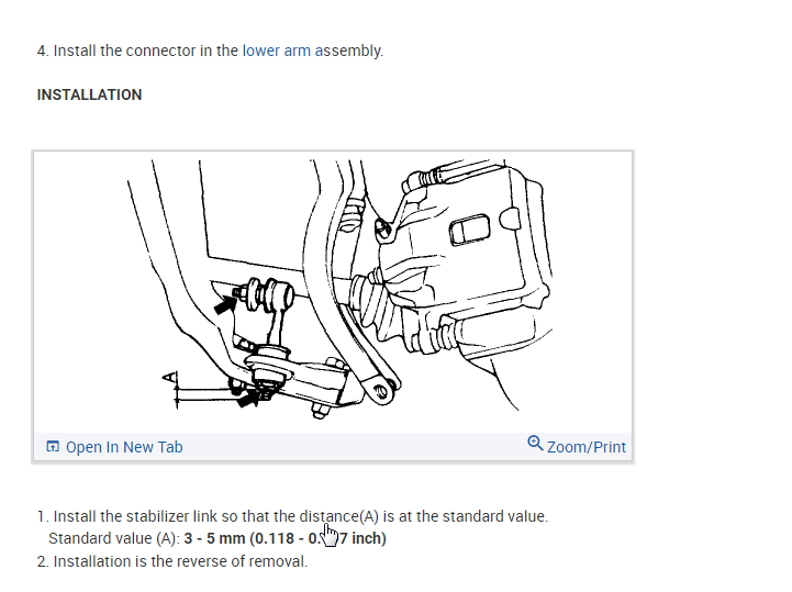 1. Install the stabilizer link so that the distance(A) is at the standard value.
