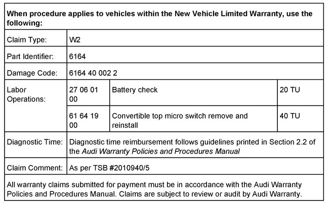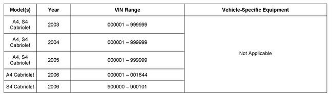 Only technicians who have successfully completed Self Study Program 991203 - The Audi A4 Cabriolet and course number 991202 - Audi A4 Cabriolet Introduction are permitted to service the A4 Cabriolet. If you have not completed these prerequisites, do not continue with this bulletin. Have the case dispatched to a qualified A4 Cabriolet technician.