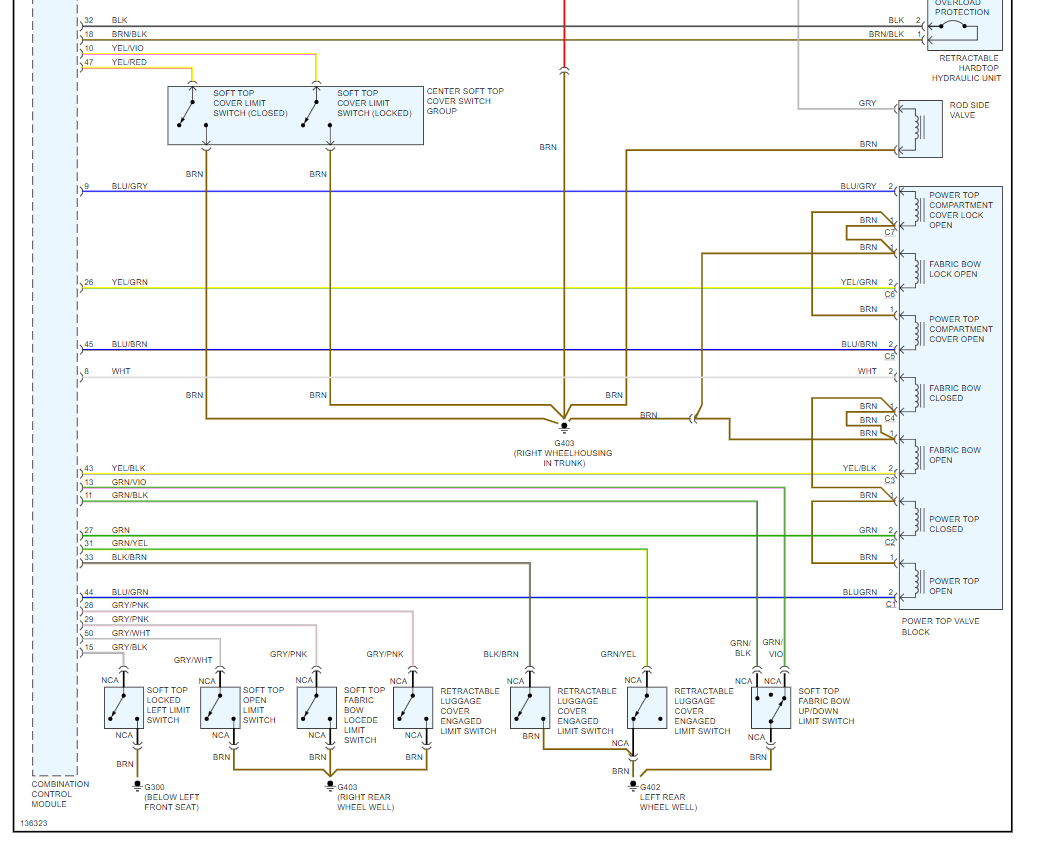 Convertible top did not latch completely when top went down. The power button switch flashes and does not work. The key truck release has also been disabled. I can enter the trunk using the key.