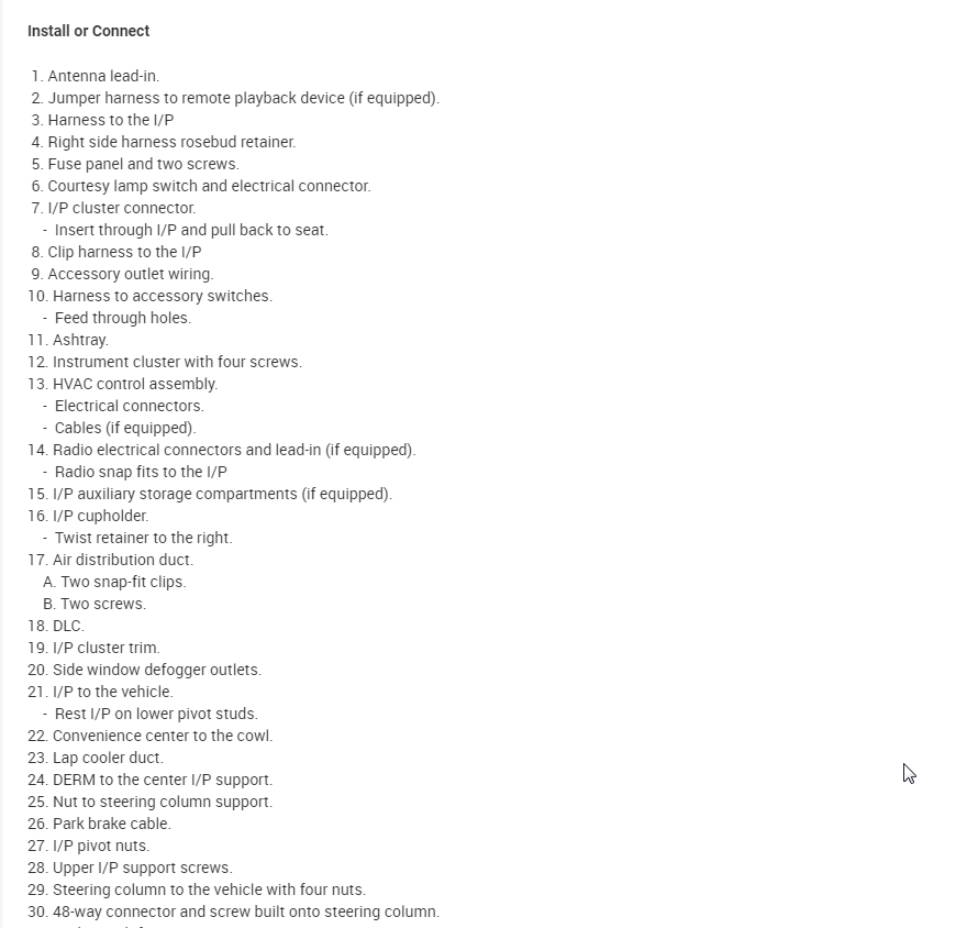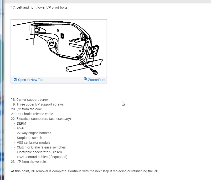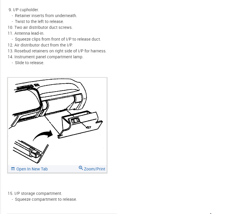 Looks like the way to get this out is to remove the instrument panel/dash. I attached the process for this and let us know if you need more info. Thanks