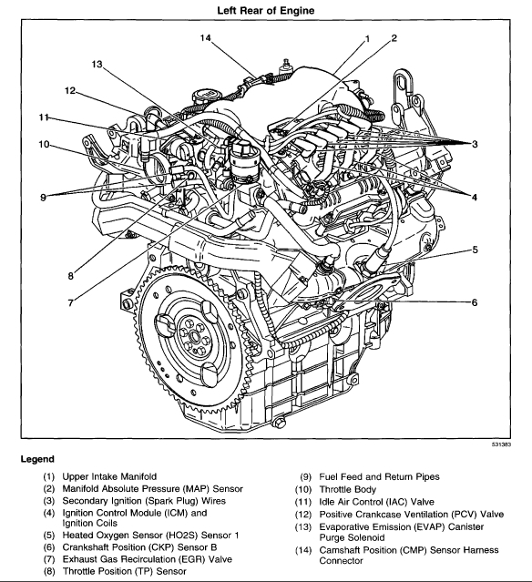 Finally, check to make sure there are no hoses leaning as well as the intake gasket which is a common problem on these engines. I have attached a picture of the intake manifold for you to see. There are two different V6 engines and I am not sure which you have. The attached picture is of the 3.4L but the 3.8L looks very similar. When pressurized, check around where the manifold is mounted to the engine block for evidence of leaks. Also, there is a bypass hose above the water pump which can leak. I also attached a picture of the water pump for you to see. The belt will be routed around it.