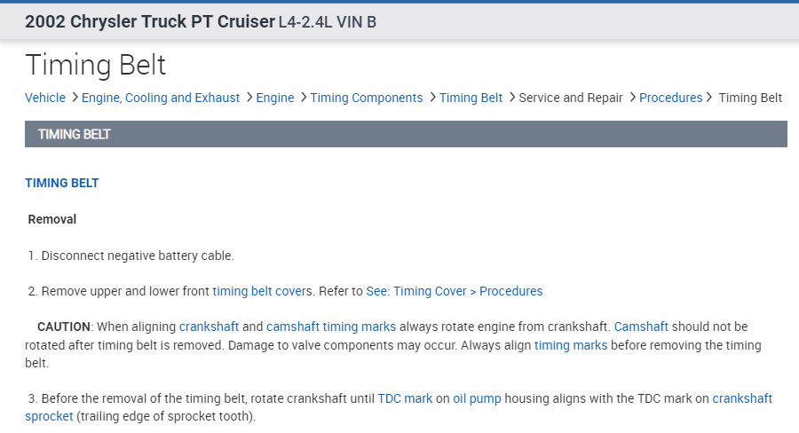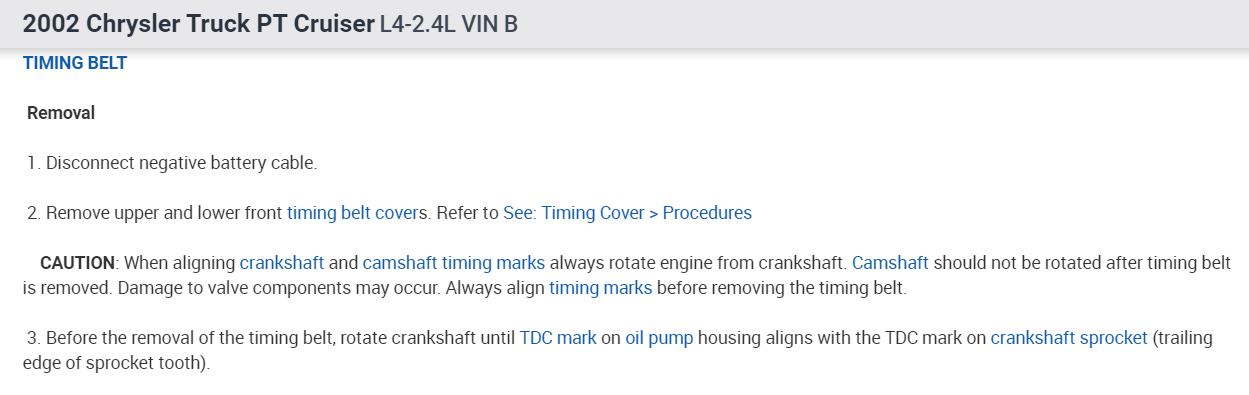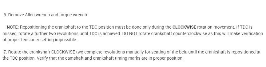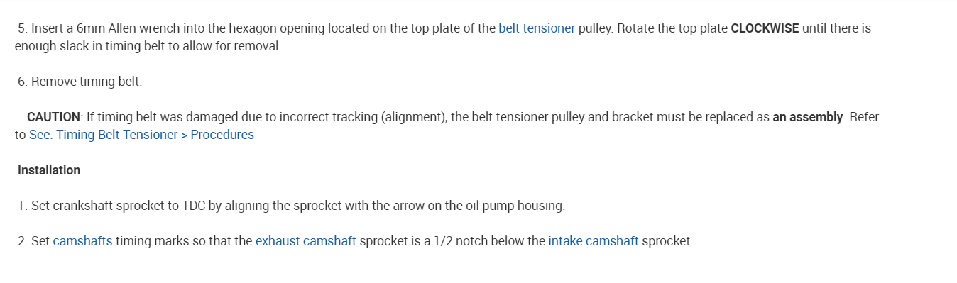 Before you remove the actual timing belt, make sure the marks are aligned as mentioned in the directions. Otherwise, it will be more difficult to time it again.