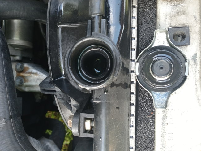 This vehicle began to run hot about 4 miles from home yesterday. I pulled it over as soon as the temperature gauge meter touch red or almost max to the side of the freeway. I turned the A/C off. I saw a little bit of white steam emitting from the passenger side of the hood near the belts. I turned the engine off, opened the hood and looked at the radiator and engine area. I noticed some white spots scattered on the radiator upper hose area. I checked the radiator cap and it looked good except the inner rubber core had a small defect or chip on the edge. I don't know if that could cause a leak problem or not because I did not see any leak before removing it. The coolant was about a gallon low after filling it up before leaving 10 minutes ago. I waited for it to complete cool down and drove to the yard. Today, I checked it again. The coolant appears to be visible with the cap off so I did not add any more. The reservoir overflow was still full from me adding enough to go from half full to full. Today, I removed what I added yesterday. I started it up on the second try and it only was a few seconds to start. I checked the cooling fans. Both were not moving. I turned on the A/C to max and checked the fans again. The passenger side fan was now running, but the drivers side fan was not. I was thinking the one running is probably the ac fan. I checked the fan connection and could not see any disconnection.